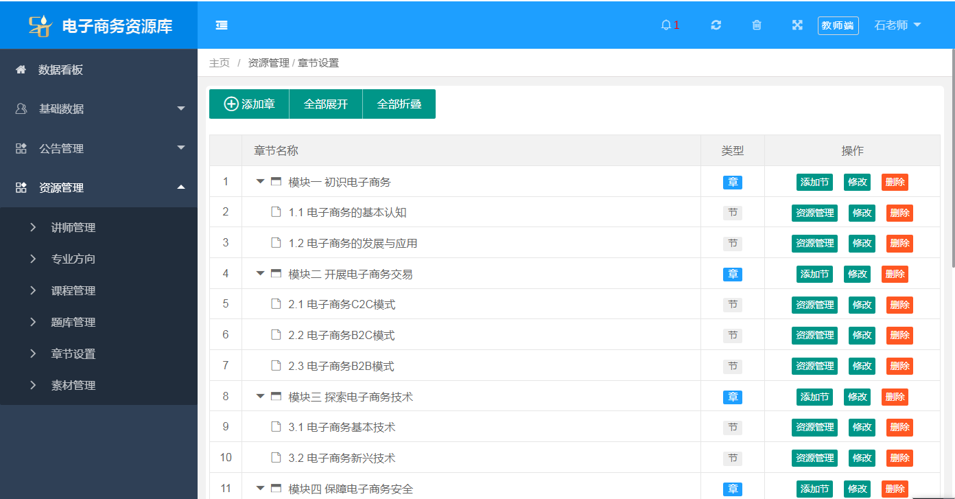 培養掌握現(xian)代企(qi)業管理知識和電子(zi)(zi)商務技能,具有較強(qiang)的(de)創(chuang)業意(yi)(yi)識和競爭意(yi)(yi)識,有良(liang)好的(de)市場開拓能力(li)的(de)復合(he)型(xing)中(zhong)級(ji)應用性專門(men)人才。 ??電子(zi)(zi)商務專業教學資源庫以(yi)課程(cheng)(cheng)資源作為平(ping)臺(tai)核心(xin),已(yi)建立起(qi)十多門(men)專業主干課程(cheng)(cheng)的(de)課程(cheng)(cheng)資源,包括與教材(cai)、課程(cheng)(cheng)標準(zhun)、課程(cheng)(cheng)PPT、教案、習題、微課、案例、學生作品、素材(cai)等相關的(de),以(yi)圖片、聲音、視頻(pin)、動(dong)畫(hua)、網頁課件等形態存在的(de)教學資源。