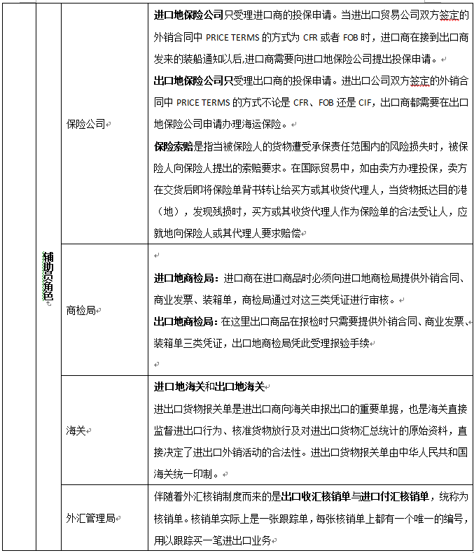 出(chu)(chu)口商、進(jin)口商、生產商(工廠(chang))、進(jin)口銀行、出(chu)(chu)口銀行、保(bao)險公(gong)司、商檢局(ju)、海關、外匯管理局(ju)、貨代、國(guo)稅局(ju)