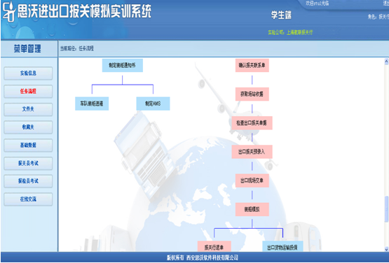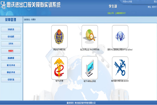思沃進(jin)出(chu)(chu)(chu)(chu)口(kou)報(bao)關(guan)(guan)模擬實訓(xun)平臺系(xi)統(tong)的(de)(de)報(bao)關(guan)(guan)業(ye)務(wu)包含(han)了一般貿(mao)易(yi)(yi)、易(yi)(yi)貨貿(mao)易(yi)(yi)、來(lai)料加工、進(jin)料非對口(kou)、低值輔(fu)料、租賃不滿一年、租賃貿(mao)易(yi)(yi)、寄售代(dai)銷、貨樣廣(guang)告(gao)(gao)品A、貨樣廣(guang)告(gao)(gao)品B、無代(dai)價(jia)抵償、援助物資、其(qi)他貿(mao)易(yi)(yi)的(de)(de)進(jin)口(kou)和出(chu)(chu)(chu)(chu)口(kou)。在該實訓(xun)教(jiao)學軟件中學生(sheng)可以(yi)在實驗(yan)中模擬外(wai)貿(mao)企業(ye)和報(bao)關(guan)(guan)行兩(liang)種角(jiao)色(se)(se),兩(liang)個角(jiao)色(se)(se)的(de)(de)業(ye)務(wu)重點(dian)突(tu)出(chu)(chu)(chu)(chu),依據不同的(de)(de)貿(mao)易(yi)(yi)方式、進(jin)出(chu)(chu)(chu)(chu)口(kou)國家、商品監管完成(cheng)相關(guan)(guan)的(de)(de)任務(wu)。通(tong)過報(bao)關(guan)(guan)實驗(yan)使學生(sheng)將報(bao)關(guan)(guan)業(ye)務(wu)的(de)(de)理論和實踐(jian)聯(lian)系(xi)起來(lai),提高學生(sheng)的(de)(de)操作能(neng)力,為(wei)走出(chu)(chu)(chu)(chu)校門成(cheng)為(wei)操作型的(de)(de)人才服務(wu)于國際貿(mao)易(yi)(yi)而(er)打下(xia)基礎。