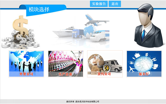學生端有四個(ge)(ge)角(jiao)色(se):外貿(mao)公司、生產商、貨(huo)代公司和報關行。一個(ge)(ge)學生可(ke)模擬一個(ge)(ge)或多個(ge)(ge)角(jiao)色(se)。學生可(ke)選擇任何一個(ge)(ge)或多個(ge)(ge)角(jiao)色(se)進行注(zhu)冊,四個(ge)(ge)企業信息注(zhu)冊完成后可(ke)開(kai)始(shi)實驗(yan)。