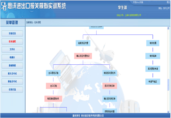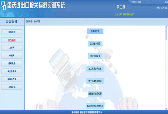 3、教師端可以有針(zhen)對(dui)性地采取(qu)任務(wu)驅動,設(she)置不同(tong)貿易方(fang)式的實驗(yan)(yan)。學生(sheng)(sheng)根據(ju)教師設(she)置的實驗(yan)(yan)信息完成(cheng)(cheng)相關任務(wu)。學生(sheng)(sheng)端設(she)置由多(duo)個角色。學生(sheng)(sheng)可以同(tong)時扮(ban)演不同(tong)個角色,獨(du)立完成(cheng)(cheng)任務(wu)。也可以多(duo)個學生(sheng)(sheng)分別扮(ban)演不同(tong)角色,共同(tong)完成(cheng)(cheng)相關任務(wu)。