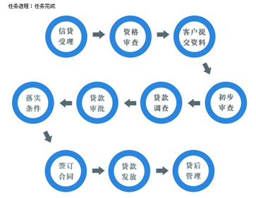 實訓主(zhu)體分五類流(liu)程:短期貸(dai)(dai)款(kuan)(kuan)、長期貸(dai)(dai)款(kuan)(kuan)、票據貼現、個(ge)人(ren)住(zhu)房抵押貸(dai)(dai)款(kuan)(kuan)、個(ge)人(ren)汽車(che)消費貸(dai)(dai)款(kuan)(kuan)。提(ti)供(gong)靈活的業務流(liu)程控制,包括(kuo)信貸(dai)(dai)受理、資(zi)格(ge)審(shen)查(cha)、貸(dai)(dai)款(kuan)(kuan)調查(cha)、貸(dai)(dai)款(kuan)(kuan)審(shen)批(pi)、落實條(tiao)件、簽訂(ding)合同、貸(dai)(dai)款(kuan)(kuan)發放、貸(dai)(dai)后管理等步驟。
