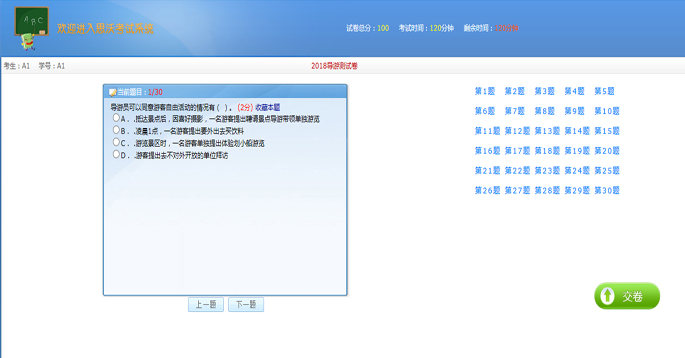 支持隨機抽取100道(dao)試題,每個考(kao)(kao)生(sheng)考(kao)(kao)題不(bu)一樣。