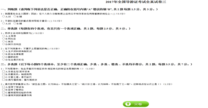 提供對試卷存(cun)在的客觀題(ti)(ti)(如(ru)判斷題(ti)(ti)、單(dan)選題(ti)(ti)、多選題(ti)(ti)等),系統自動評分(fen)。