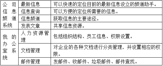 你可(ke)以向(xiang)公(gong)(gong)(gong)共信息欄內發布新聞(wen)、通知……其(qi)(qi)他(ta)用戶(hu)可(ke)及(ji)時瀏(liu)覽(lan)最新信息。“我(wo)的(de)(de)(de)辦(ban)公(gong)(gong)(gong)室”模塊(kuai),你可(ke)以輕松管理各類型文(wen)檔資料;郵(you)件(jian)系(xi)(xi)統方(fang)便了與其(qi)(qi)他(ta)人(ren)員的(de)(de)(de)聯系(xi)(xi);公(gong)(gong)(gong)文(wen)辦(ban)理是辦(ban)公(gong)(gong)(gong)系(xi)(xi)統的(de)(de)(de)重點,公(gong)(gong)(gong)文(wen)審批流程(cheng)將在(zai)此進行;通訊錄讓(rang)你輕松查閱(yue)需要的(de)(de)(de)聯系(xi)(xi)方(fang)式。“日志任務(wu)”模塊(kuai)是個人(ren)事務(wu)計(ji)劃和(he)實施(shi)的(de)(de)(de)小秘書,提(ti)醒你待(dai)辦(ban)公(gong)(gong)(gong)文(wen)和(he)待(dai)辦(ban)事件(jian)。你可(ke)以在(zai)線與其(qi)(qi)他(ta)成員交流,或者進行網絡會(hui)議、在(zai)線投票及(ji)自由討(tao)論(lun)。